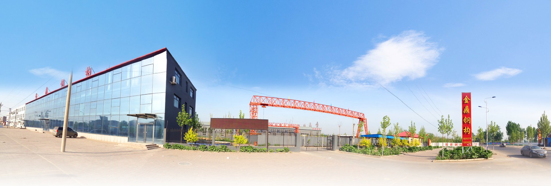 深州市金鼎建材有限公司鋼構生產基地,坐落于深州市護駕遲鎮,占地50余畝,并擁有現代化標準加工基地1.5萬平方米,現代化辦公樓3000平方米,具備年產1萬噸鋼構件的生產規模,是集鋼構設計、制作、銷售、施工安裝為一體的大型綜合性鋼構企業。